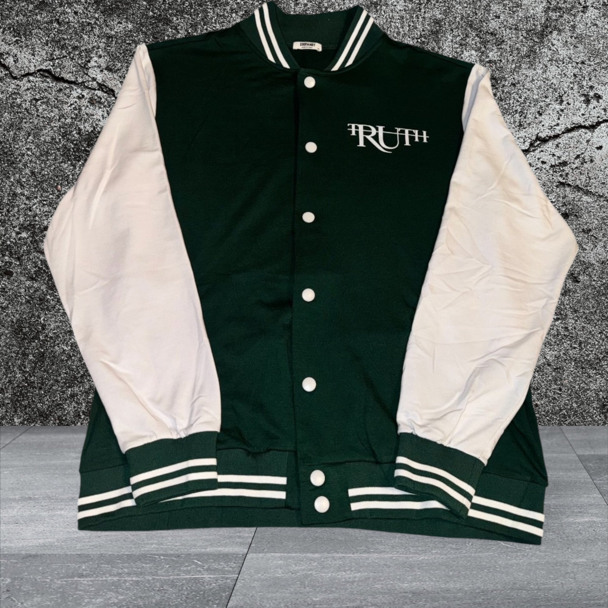 • On the left chest area, the word “TRUTH” is printed in a stylish, serif font with a cross-like extension on the “T,” giving it a bold, statement look.