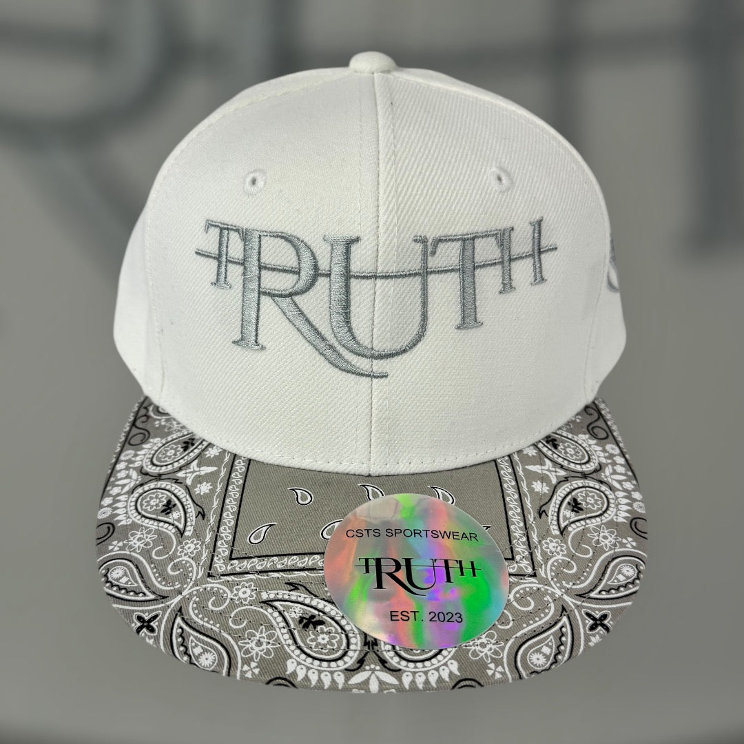 2. Front Design: The word “TRUTH” is embroidered on the front in elegant gray lettering, using a unique and artistic font where the letters are interconnected, giving it a bold and modern appearance.